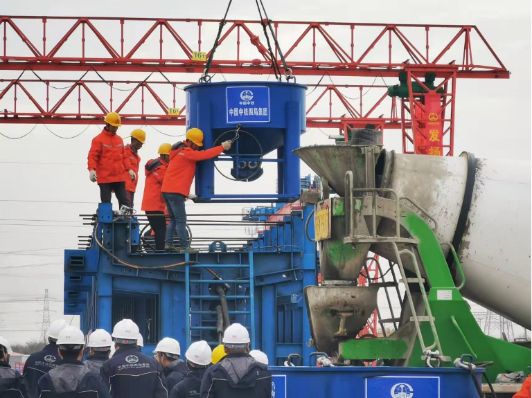 11月16日上午,“交通先導(dǎo)爭(zhēng)先鋒”黨建主題實(shí)踐活動(dòng)暨洋呂鐵路首片T梁澆筑儀式在中鐵四局集團(tuán)有限公司啟東制梁場(chǎng)舉行,“黨員先鋒隊(duì)”和“青年突擊隊(duì)”現(xiàn)場(chǎng)接受授旗。10點(diǎn)28分,隨著南通沿海集團(tuán)副董事長(zhǎng)黃浩宣布,洋呂鐵路首片T梁預(yù)制正式開(kāi)始澆筑,標(biāo)志著洋呂鐵路建設(shè)進(jìn)入一個(gè)新階段。