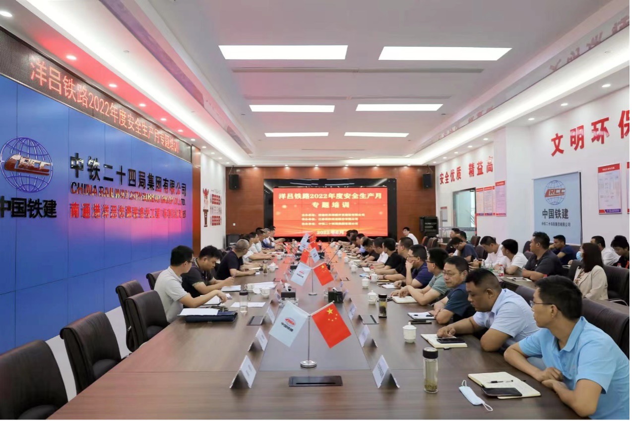 為認(rèn)真貫徹落實(shí)全國(guó)第21個(gè)安全生產(chǎn)月“遵守安全生產(chǎn)法,當(dāng)好第一責(zé)任人”主題,6月21日下午,洋呂鐵路2022年度安全生產(chǎn)月專題培訓(xùn)在中鐵二十四局項(xiàng)目部召開(kāi),鐵路公司總經(jīng)理趙國(guó)彬主持培訓(xùn)會(huì)。洋呂鐵路公司、江泰保險(xiǎn)經(jīng)紀(jì)股份有限公司南通分公司、南京上鐵公司、EPC總包、各工程局以及各監(jiān)理公司相關(guān)負(fù)責(zé)人、安全員參加培訓(xùn)。